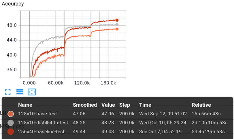 [4] suggests that even having a student of the same size as the teacher can improve results, but I haven’t had immediate success with this. On CCRL, while the student gets decent extremely quickly (the policy and MSE before the first LR drop was about as good as the policy and MSE of the teacher just before the **second **LR drop), the final performance is about the same, perhaps slightly worse than the 128x10 teacher. However, KD still has some applications for us: