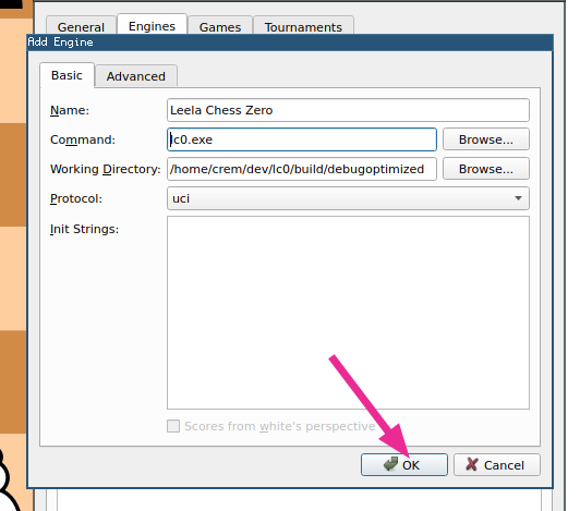 - In the “Select Engine Executable” dialog, find and select your lc0.exe file.